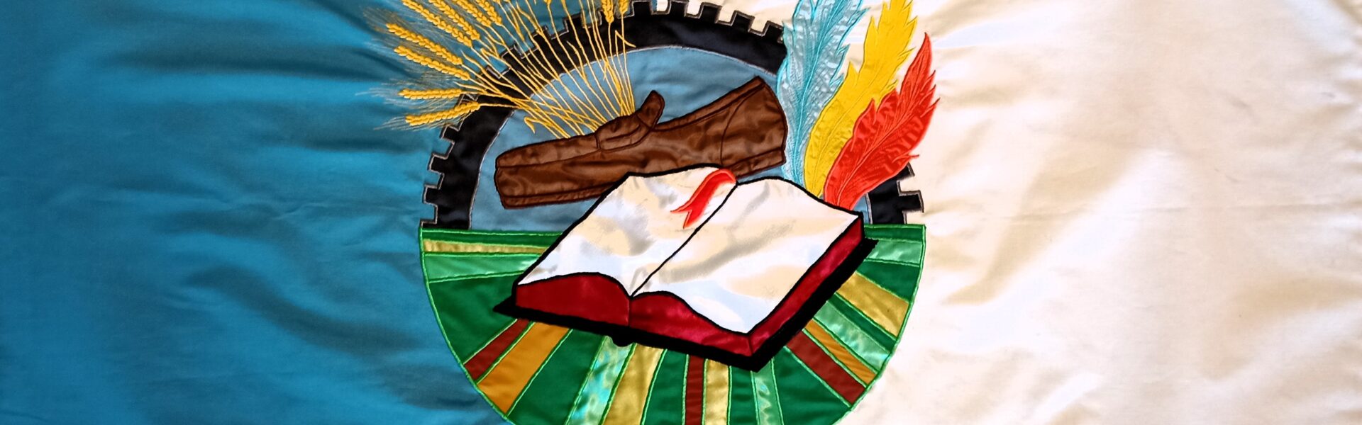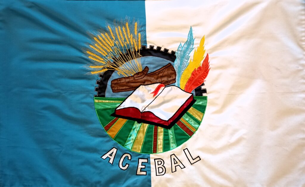 Se realizó tras un concurso en la escuela primaria por iniciativa de la comuna local, la alumna premiada por el trabajo del mismo es Agustina Almaraz. dos colores, celeste y blanco, representando los colores de nuestra bandera nacional, y relacionado con los colores del cielo. En el centro un escudo formado por los engranajes de una maquinaria representando la industria, y debajo el campo, y el trigo como uno de los principales cultivos. Observamos el zapato, por ser la principal industria, la del calzado, y las plumas representando a los tan típicos y reconocidos carnavales. Y en el centro el libro, ya que Acebal es capital provincial de la Poesía.