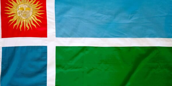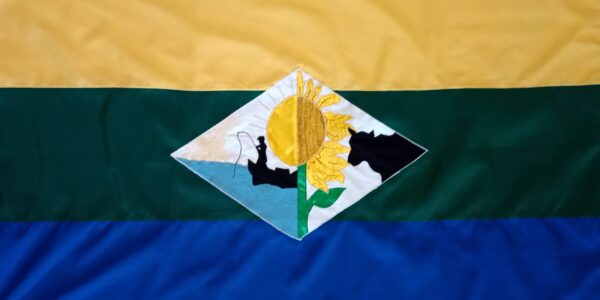 Una cruz en el centro que representa a la Cruz del Sur que es un referente de estas latitudes, con el pie de la cruz hacia adelante, señalando un rumbo, un camino, el futuro. Los colores que forman los cuadrantes…