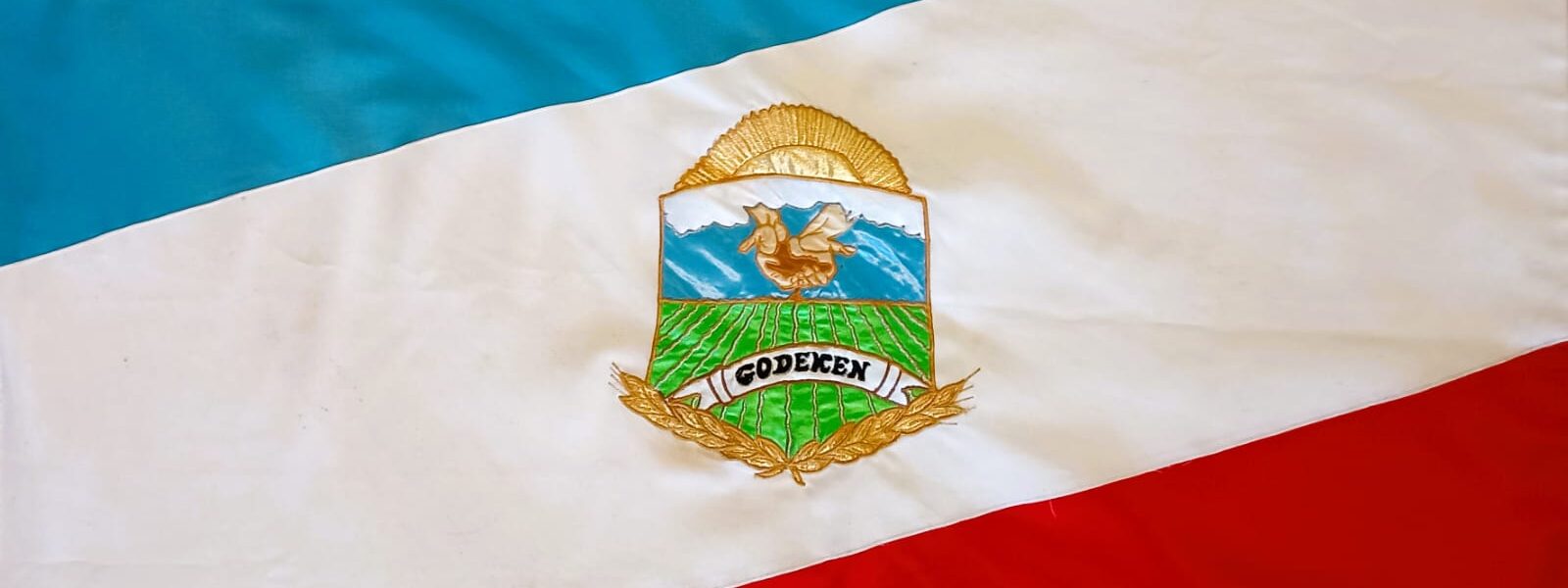Se distingue por su diseño transversal oblicuo, rojo, sentimiento federalista de López, y con Italia, por los inmigrantes. Celeste y blanco, bandera argentina, escudo en el centro, da identidad y fuerza a la bandera.