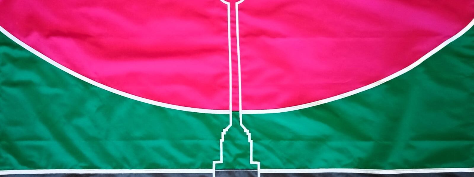Nuestro pueblo es reconocido como uno de los mejores arbolados de la zona, con frondosos ejemplares que se manifiestan en cada primavera. Tomamos el lapacho como especie típica, el color magenta de sus flores se traslada a la parte superior de la bandera, (en una abstracción de las copas de esos árboles) sumado a que la fuerza del color y la curva abierta hacia arriba, acompañada por la línea blanca, representa el dinamismo de su gente que busca avanzar en valores, cultura y proyectos.