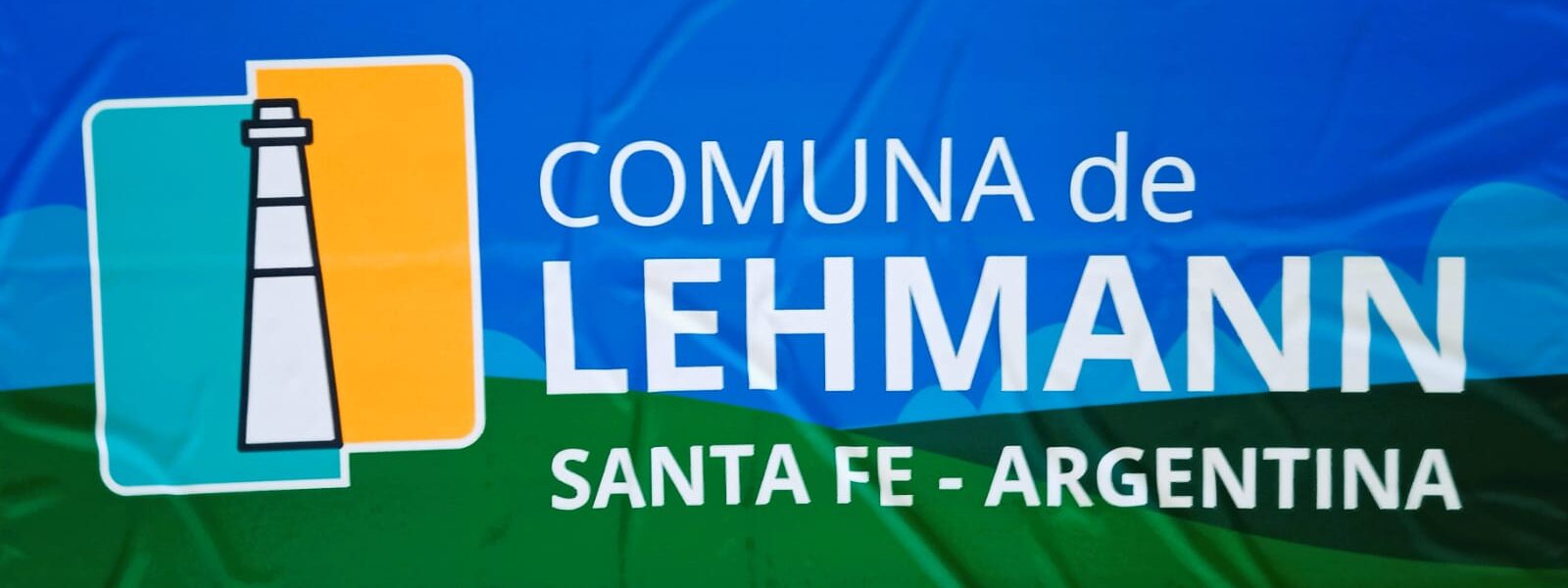 El isologotipo diseñado para la Comuna de Lehmann representa el plano de nuestra localidad atravesado por la Ruta Nacional 34. En el este se encuentra Lehmann y en el oeste Nueva Lehmann.