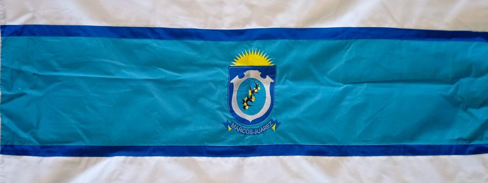 Tal como lo establece la Carta Orgánica Municipal, nuestra bandera está formada por tres franjas horizontales: celeste la del centro y blancas las dos restantes, separadas con vivos de color azul. En el centro de la franja celeste luce el escudo local. Fue creada el 9 de junio de 1987.