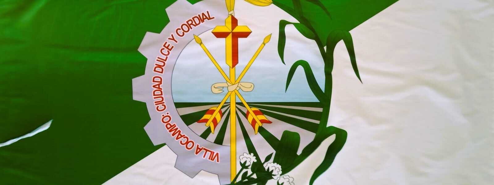 Cuenta con una lanza y dos flechas unidas por la cinta de la fraternidad representando el pasado aborigen. Los surcos simbolizan el trabajo. El engranaje son las industrias de la localidad. La cruz es el cristianismo y el amor a Dios. La leyenda de ciudad dulce y cordial va por uno de sus cultivos y por la hospitalidad reinante, el paño verdiblanco en diagonales son las corrientes migratorias. Verde, esperanza, blanco, paz y valores, cielo celeste espíritu de trabajo y la caña de azúcar y el algodón como las producciones.