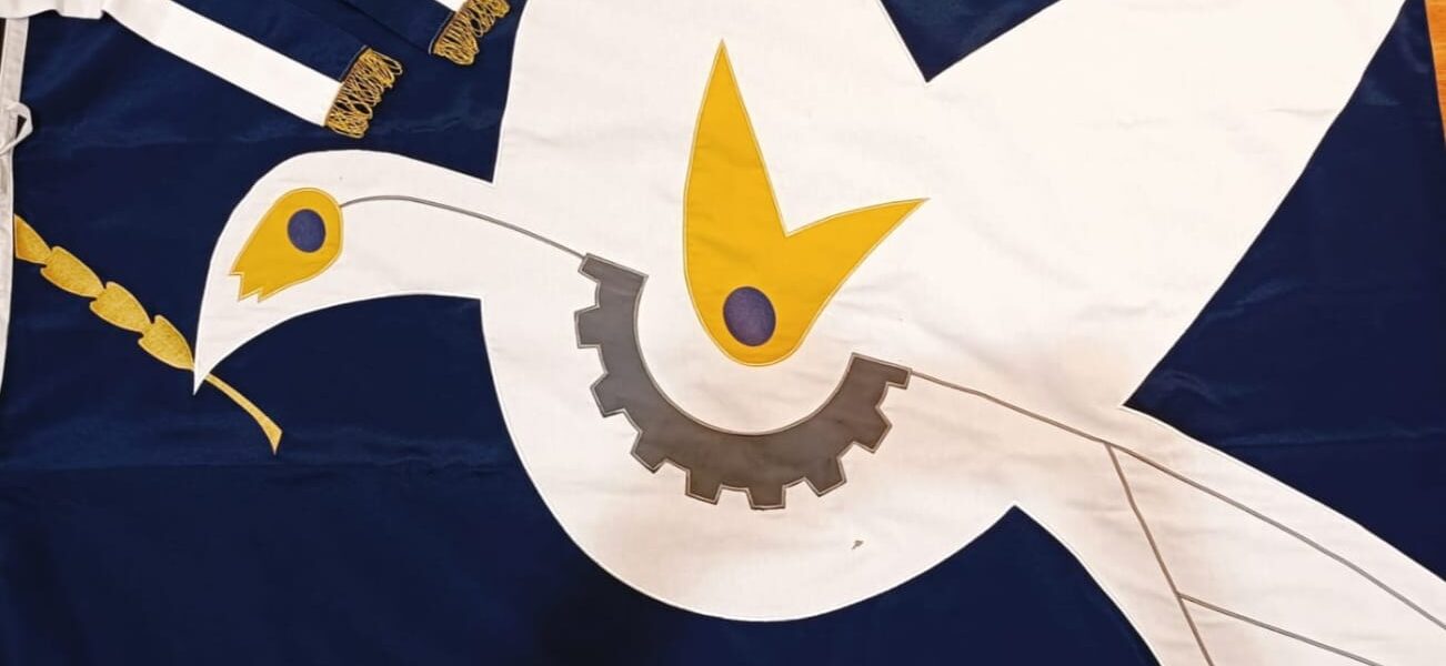 En su pico lleva una espiga, fruto de nuestro CAMPO, producto del trabajo y el conocimiento, el ALIMENTO, pan nuestro y para los demás, la SOLIDARIDAD. Todo está dentro de la paloma, porque LA PAZ es continente, resultado de los símbolos que porta, pero a la vez es condición para que ellos se realicen. Fue intención de diseño transmitir, en su actitud, un espíritu de determinación, pues la paz será el fruto de una búsqueda decidida de la Sociedad. Es, en síntesis, una paloma a prevalecer por sobre la violencia.