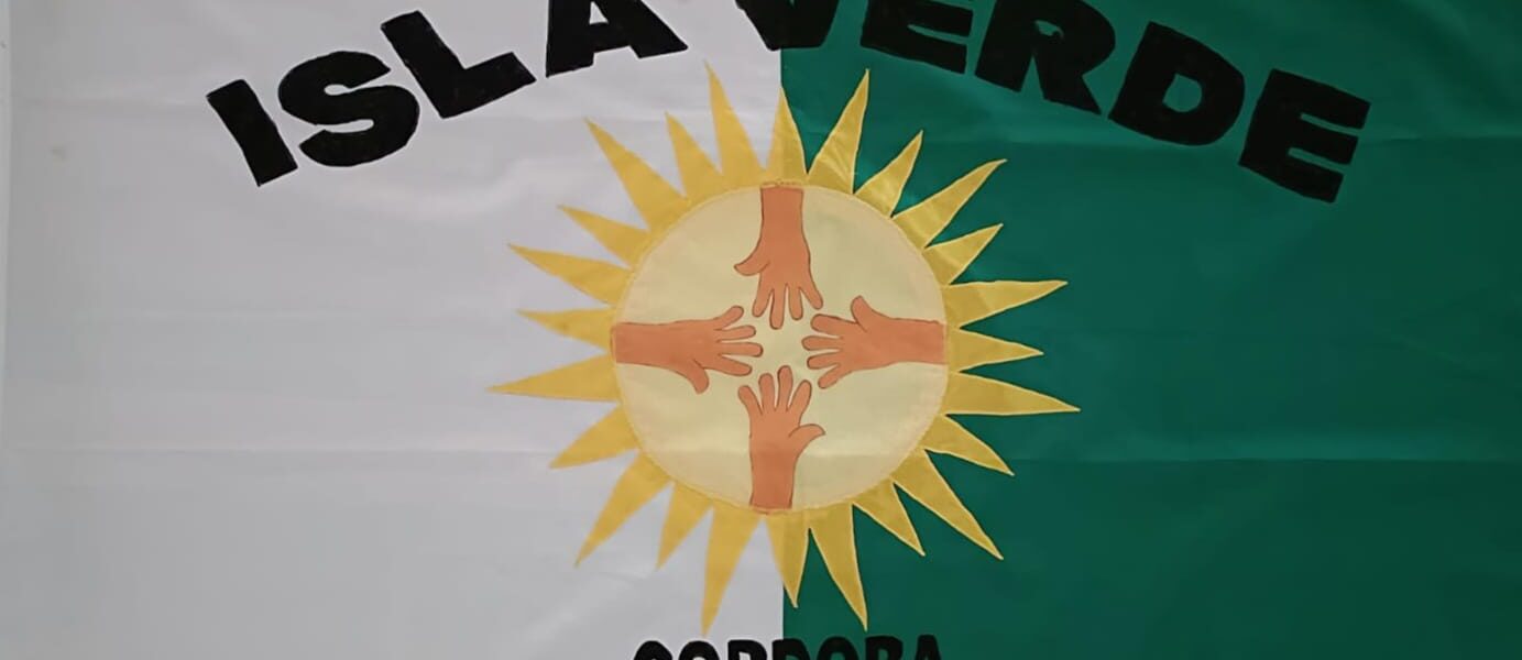 La bandera de Isla Verde fue creada el 19 de Agosto del año 2001, coincidiendo con el Centenario de la localidad y se concretó a través de un concurso intercolegial, del que participaron alumnos de las escuelas tanto urbanas, como rurales de la jurisdicción territorial de la localidad, resultando ganadora LUCIANA ROCIO LUNA, alumna de 6to. Grado División “B” de la Escuela Provincia Santiago del Estero.
