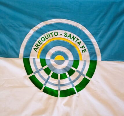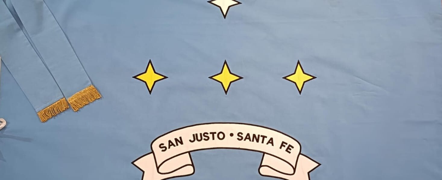 El gallardete tiene la escritura SAN JUSTO – SANTA FE, ocupa el mismo ancho de las estrellas de los extremos y está situado aproximadamente en el medio del espacio que va desde las estrellas al borde inferior.