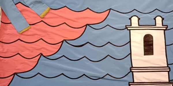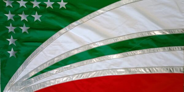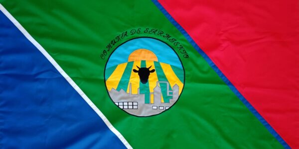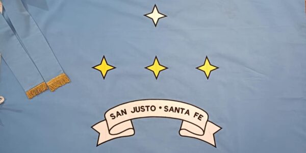 En la franja superior, se encuentran ubicadas las 12 estrellas plateadas que representan cada uno de los barrios que componen la ciudad (plateadas porque representan la templanza, verdad e integridad de todos y cada unos de los habitantes de cada…